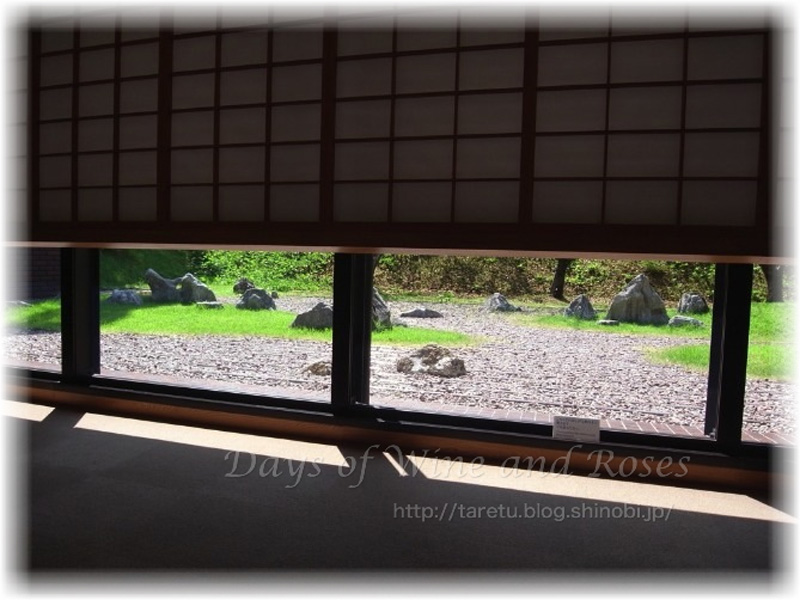 もちろん作品の写真は不可。なので、休憩室みたいな場所から見える石庭を。