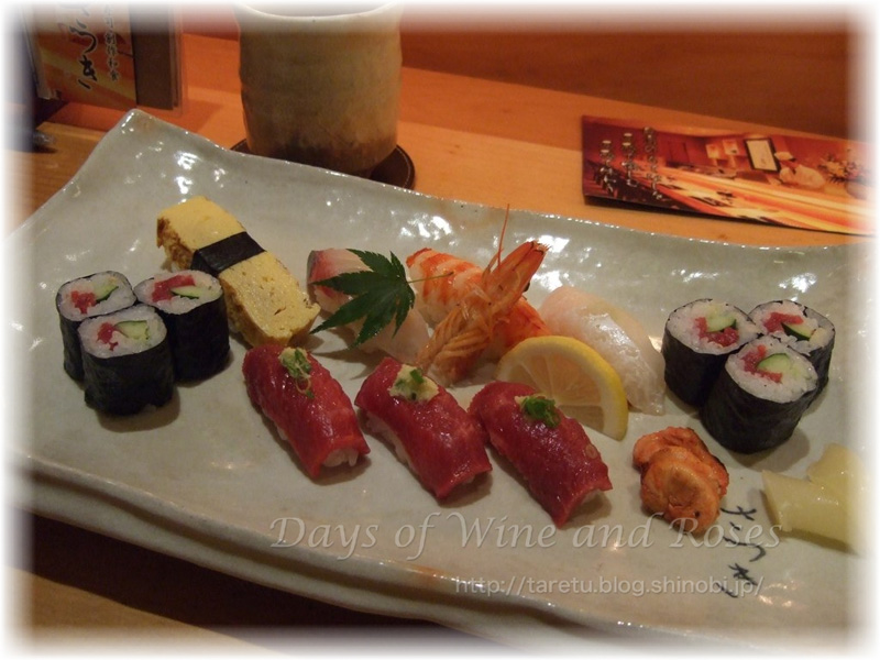 ただ昼間っからアルコール抜きで馬刺しってわけにもいかないしねえ。なので、お寿司屋さんで馬刺しにぎりの入った定食をいただくことにしました。