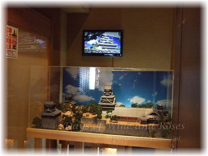 お店の入口には熊本城の模型が飾ってありました。すごいな、精巧です。