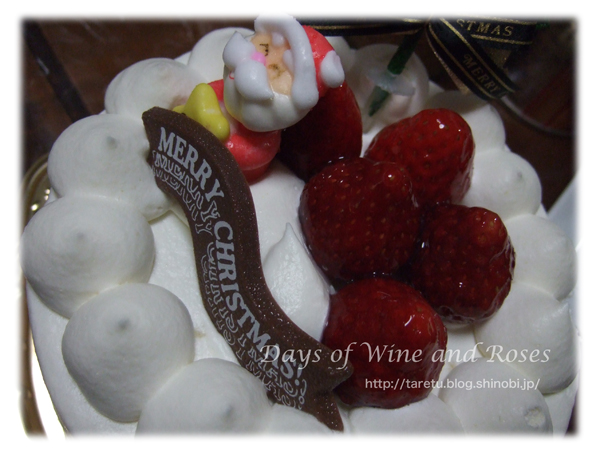 白いふわふわしたケーキにイチゴの飾り。見ているとクリスマスらしくてうきうきします。