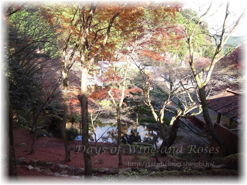 本堂自体は撮影ができない様子。本堂のバルコニーから心字池とその周辺を撮りました。