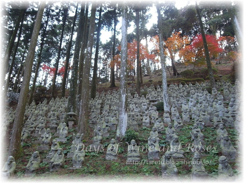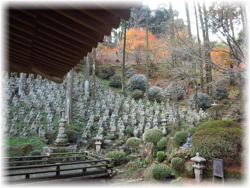 開山堂への道の横には平成につくられたという五百羅漢像。新しいものとはいえ、なかなかの迫力。