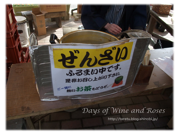 新酒の横にはぜんざいのふるまいもあります。カボチャの入った美味しいぜんざいです。