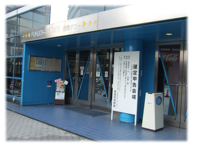 で、藤崎の西福岡税務署に赴くと…地下鉄藤崎駅には黒々と確定申告センターを福岡タワーに用意しました。税務署では取り扱っていません。と表示が…。