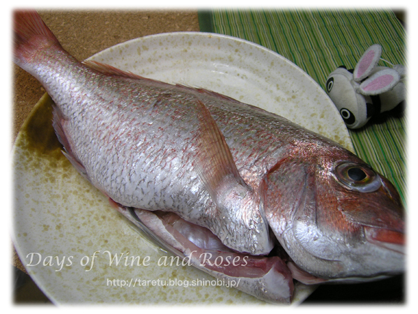 で、鯛とカワハギを買ってきました。かなり大きな鯛が一尾700円。カワハギが5尾で500円。
