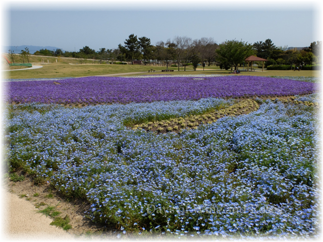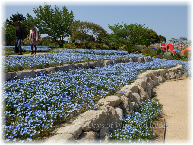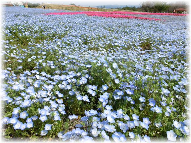 春の海浜公園、ネモフィラという花が満開です。