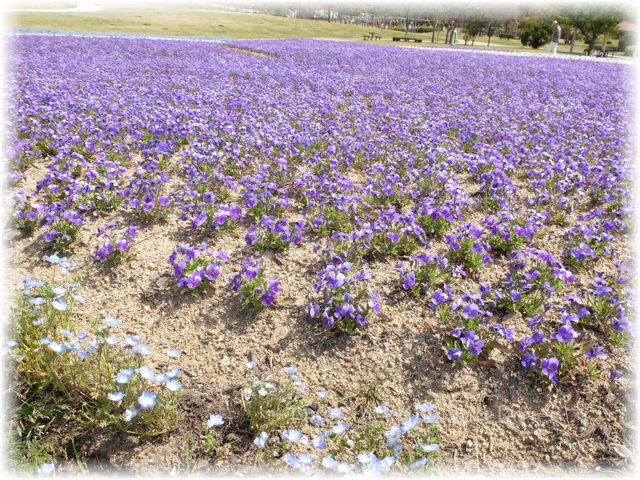 ネモフィラだけでなくこの紫の花の絨毯もきれい。