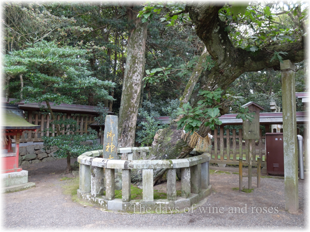 境内の片隅にご神木の楢の木。ぐねぐねとした古木で、貫禄があります。宗像神社のご神紋はこの神木にあやかって楢なのだそうです。