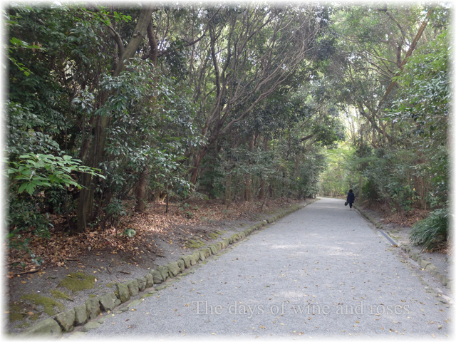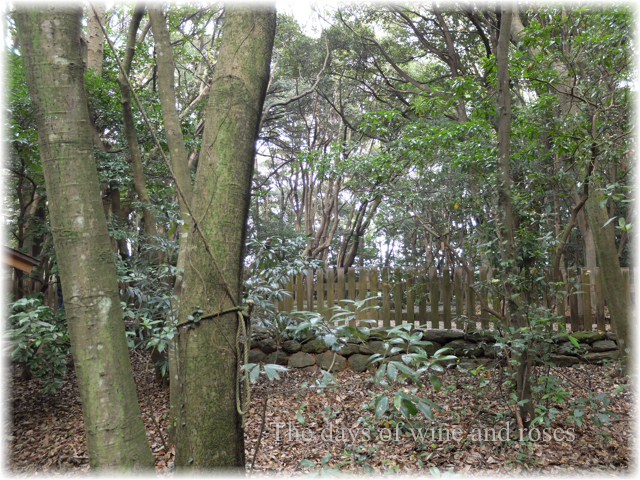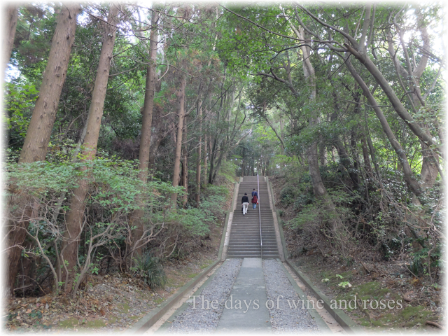 この参道から、沖の島の沖津宮(おきつみや) にいらっしゃる田心姫神(たごりひめ)、筑前大島にいらっしゃる中津宮(なかつみや) : 湍津姫神(たぎつひめ)をお迎えする第二宮(ていにぐう)、第三宮(ていさんぐう)へと向かい、さらには古代よりの齋の場、高宮斎場に向かいます。