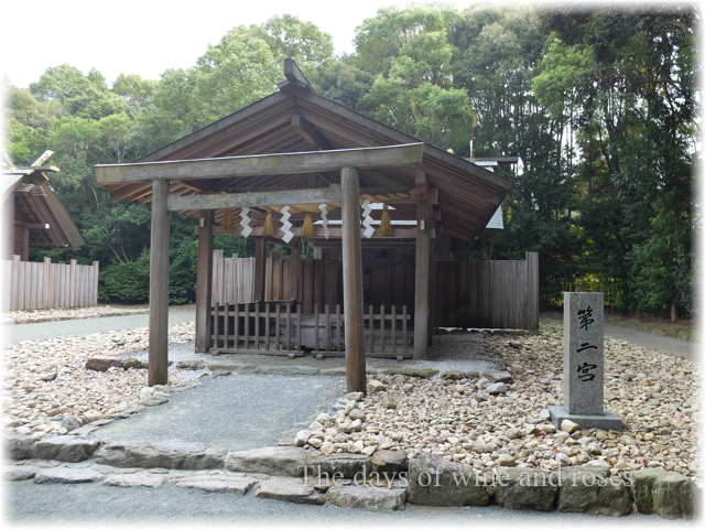 横道に入って、第二宮(ていにぐう)、田心姫神(たごりひめ)をお迎えする場所です。伊勢と同じ唯一神明造で、宗像三女神をいかに重要な神様なのかわかります。