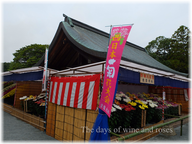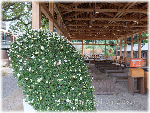 辺津宮の仮殿にも菊が飾られていました。