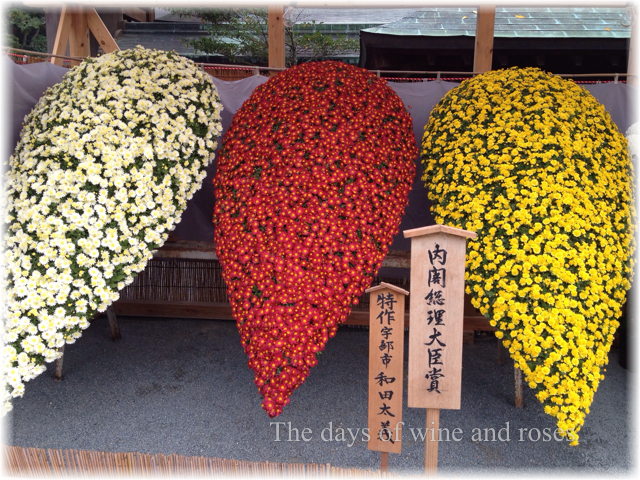 ちょっと異彩を放つ奉納作品。宗像大社や七五三の文字を菊が彩っています。