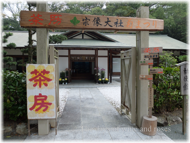 さて高宮斎場も行き、境内も見てまわって、少し疲れました。茶房との看板があったので、入ってみました。菊まつりと大きく書かれているから、これは菊まつり用のスペシャルなのかしら。