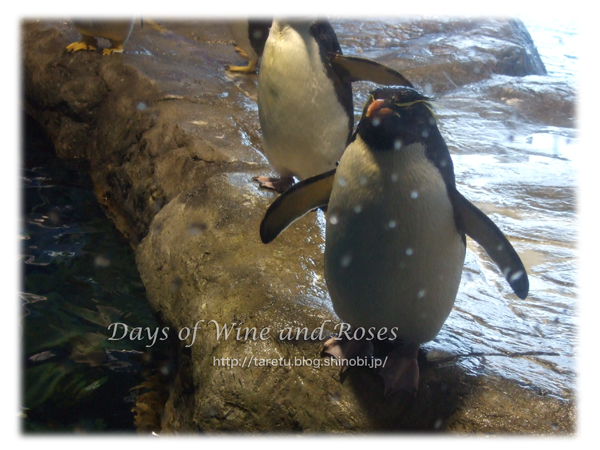 最初に出迎えてくれたイワトビペンギン。コイツが、ガラス窓から離れないですよ。なんか、観客に向かってアイソを振りまいているというか。写真を撮っていると、わざわざそちらの方向に近づいて、自分を撮らせようとするかのよう。サービス精神旺盛というか、目立ちたがりというか。うーむ。