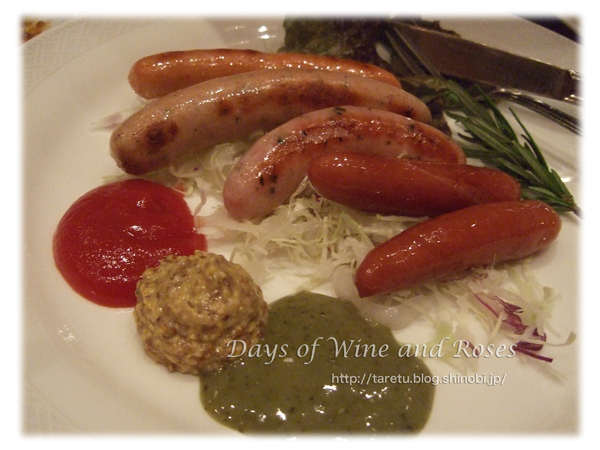 さらにビールによくあうソーセージの盛り合わせも。普通にマスタードでもいいけど、いっしょに添えてあるバジルソースもいいですね。