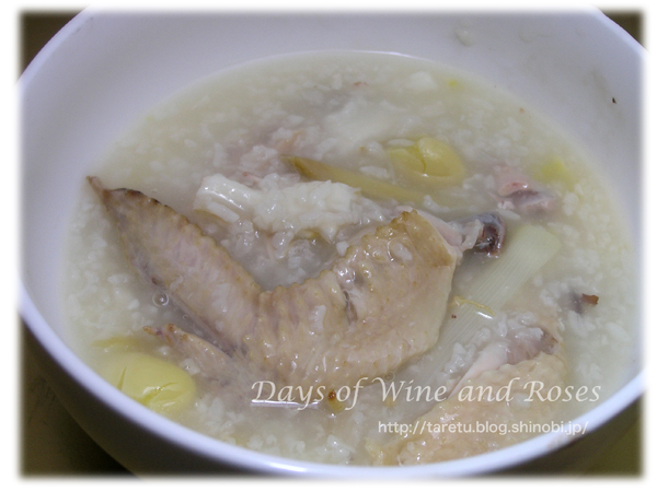 でも、本物のサムゲタンは丸ママの鶏を使わないといけないので難しいです。いーや、骨付き鶏で適当に入れちゃえ、って作ったのが、このサムゲタン粥。ごくごく適当に作ったオリジナルレシピですが、なかなかのお味に仕上がりました。