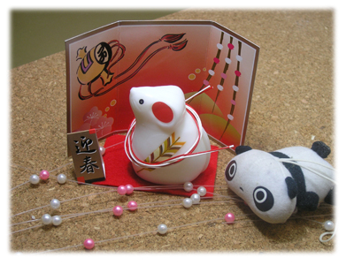 クジは、当たらなかったけど、福袋を貰いました。中に入っていたのは、子年にちなんだネズミの石けんその他。