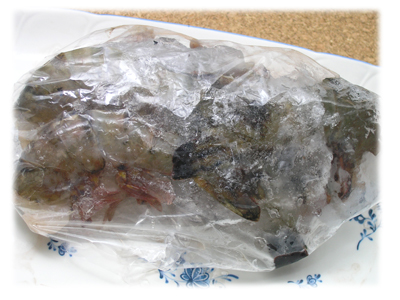 いつまでも冷凍室で寝かせておくのもなんなので、とにかく解凍してみました。