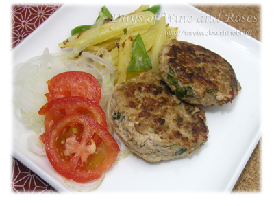 中に混ぜ込む野菜はニラや葱などでも美味しいです。セージなどハーブ類を混ぜてもいいと思います。みょうがは薬味で使うことが多いですが、こうやってお肉といっしょに混ぜると独特の風味があって結構刺激的です。意外と熱を加えてもしなっとならず美味しいです。