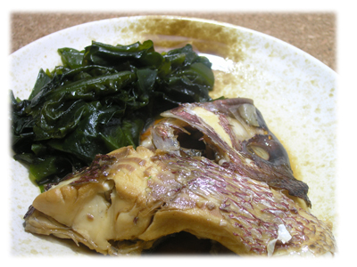 ということで、春の鯛とワカメをいっしょにお煮付けにしてみました。