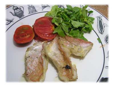 新鮮な鯛の切り身が手に入ったので、オリーブオイルで焼いてみました。