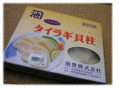 百旬館で買ったタイラギ貝柱(冷凍)を使用しました。