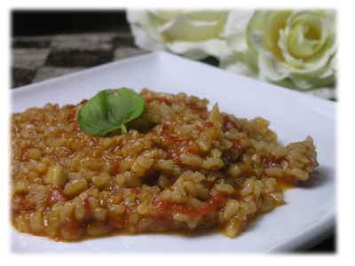 ソースはなんでもいいんですけど、トマトソースで、リゾット作っちゃいましょ。