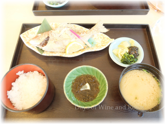 買ったばかりでカメラの設定間違えて、変にとれてますが、配偶者のたのんだ鯛の塩焼き定食です。