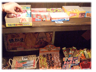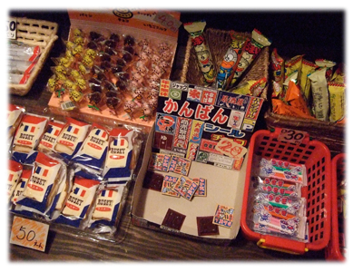 入口付近にはいろいろと駄菓子がおいてあります。なつかしー。でも、意外と若い人たちも知っていました。