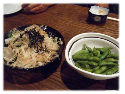 まずは大根サラダと枝豆で。