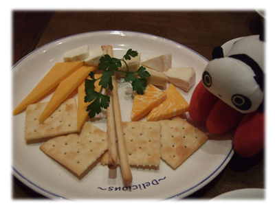チーズの盛り合わせはクラッカーとグリッシーニ(イタリア風の細長いスティック状のパン)までついていて、結構なボリュームがありました。