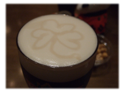 厚みのある泡で、表面にシャムロック(アイルランドを象徴する国花の三つ葉)がエスプレッソアートみたいな方法で描かれています。