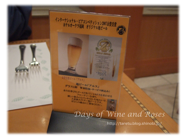 オークラはホテルオリジナルの地ビールが有名なんだとか。地下のビアホールでなくても、このカメリアでも地ビールを飲むことができます。