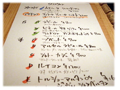 ひとりで行くとグラスワインしか飲めませんが、こうやってグラスワインのメニューがあるのはホントいいですね。