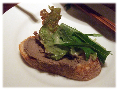 ゴクゴクいけます〜とメニューに書いてあっったので、ラ・ブベットをお願いしました。南フランスのワインですね。付きだしはナスのペーストのクラッカー添え