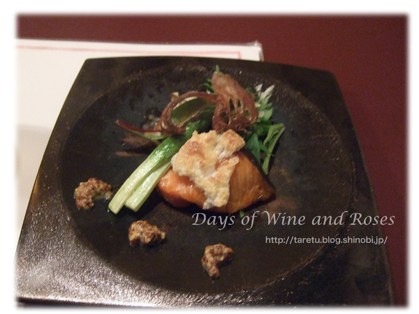 焼き物は、サーモンのアンチョビ焼き。アンチョビの入ったたれでも使っているのかな?あまりアンチョビらしさは感じませんでした。