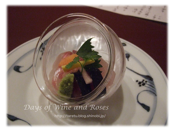内容は鯛にマグロ、かんぱちです。マグロの赤身は海苔で巻いてありちょっと創作料理風でした。