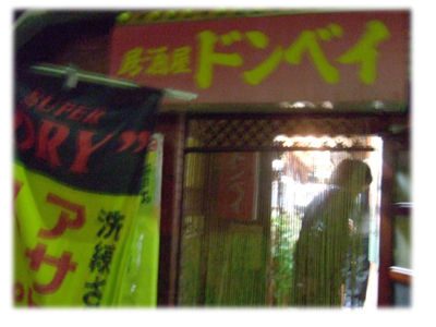 で、さてお家に帰ろう、と、道なりに行っていると、前々から気になっていた「居酒屋ドンベエ」というお店のそばを通ります。
