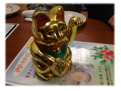 二次会で行った焼き鳥屋では、この招き猫に遊んでもらいました。