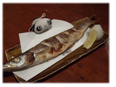 で、お次はカマスの塩焼き。本当はちょっと洋風の「カマスのガレット、バジル風味」というのも食べてみたかったのですが、配偶者のリクエストで塩焼きにおしきられました。