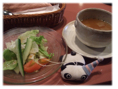 ランチにはサラダとスープがついているのですが…。うーん、スープが冷めていたのがちょっと残念。