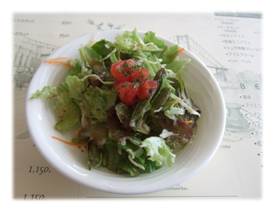 まずはサラダから。なんでもないサラダですが、使っている野菜が新鮮で、ドレッシングも酸味がまろやかで美味しいです。