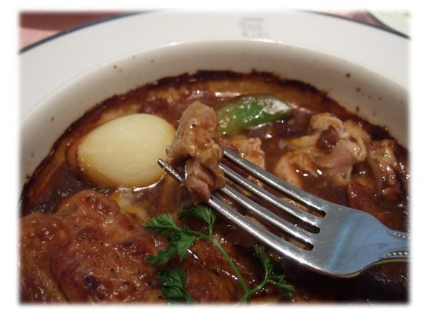 固められた内部を突き崩すと、中にはサーモンを使ったマヨネーズ風味のサラダが。こういった凝った洋食って、見かけ倒しなことが多いのですが、お味も抜群によくて。ワインにあいそう。苺も意外とサーモンにあうもんだな、と感心してしまいました。