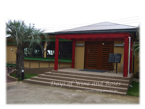 緑と赤の枠が特徴的なモダンスタイル。それほど大きくはありませんが、洒落た感じのカフェです。ここも二見ヶ浦が眼前に見えるロケーションを活かして大きな窓とテラスがあります。