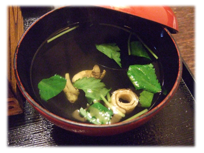 おしまいに、肝すい(うなぎの肝を使ったお吸い物)をいただいて、口の中の脂をさっぱりさせます。