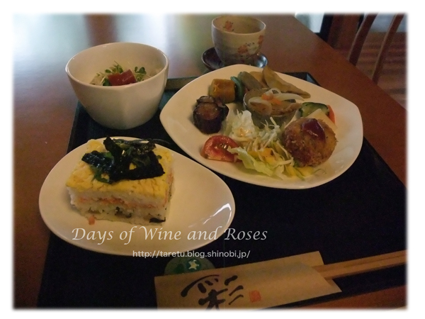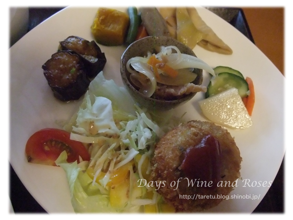 野菜たっぷのりのおかず。ひじきのコロッケとか、わかさぎの南蛮漬け、野菜の煮物などなど。うんうん。女性向けのヘルシー路線。