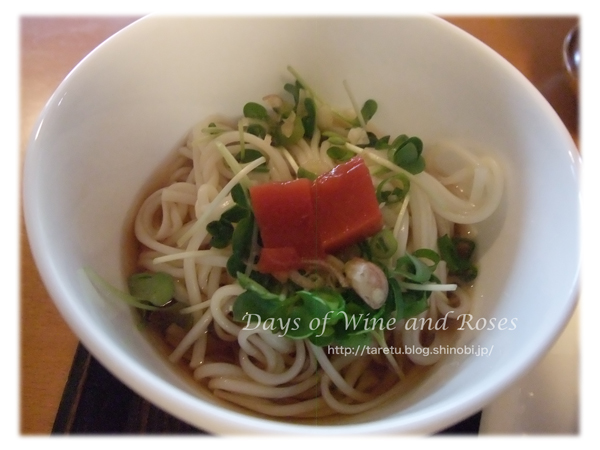 後、冷たいおそうめんも。トマトのゼリーが載っています。