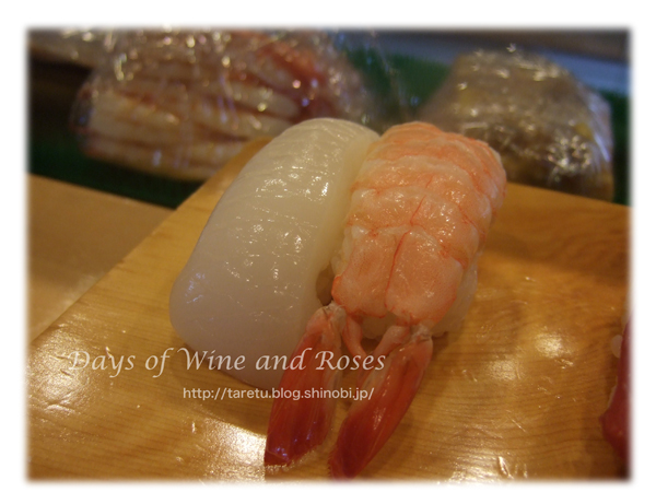 お次はイカと海老。鮮度は、ばっちり。甘いイカとぷりっぷりの海老です。