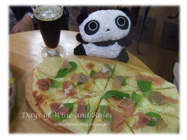 生ハムとルッコラのピザもいただきました。チーズの量が少ないので、ピザというよりもパンという感じかな。