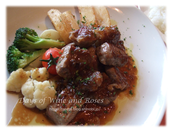 配偶者は、黒毛和牛のサイコロステーキを。こちらは和風のソースですね。ご飯によくあいます。